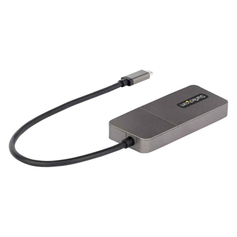 StarTech.com 3-Port USB-C Multi-Monitor Adapter, USB Type-C to 3x DisplayPort 1.4 MST Hub, Triple 4K 60Hz DP Laptop Display Extender / Splitter, HDR, Extra-Long Built-In Cable - Windows Only. USB connector type: USB Type-C, USB connector gender: Male, USB connector form factor: Straight. Product colour: Grey. Windows operating systems supported: Windows 10, Windows 10 Education, Windows 10 Education x64, Windows 10 Enterprise, Windows 10.... Width: 105 mm, Depth: 300 mm, Height: 14 mm. Package width: 142 mm, Package depth: 170 mm, Package height: 30 mm