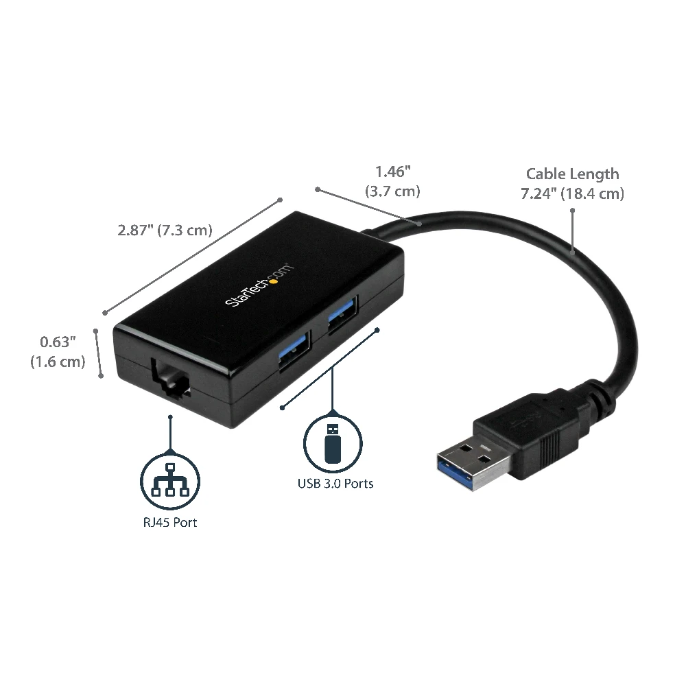 The USB to RJ45 adapter adds an Ethernet port to your computer allowing connections up to Gigabit speeds - The USB-A 3.2 Gen 1 interface is backward compatible with USB 2.0 and 1.1 - The USB network adapter offers compatibility with 10/100/1000 Mbps networks; Diagnostic LEDs; Small and convenient design - The USB LAN adapter has a built-in 11.8in/300mm cable and is powered via USB - Windows/macOS/Linux/ChromeOS support | Realtek RT8153 | 9K Jumbo Frames | VLAN Tagging | Wake on LAN