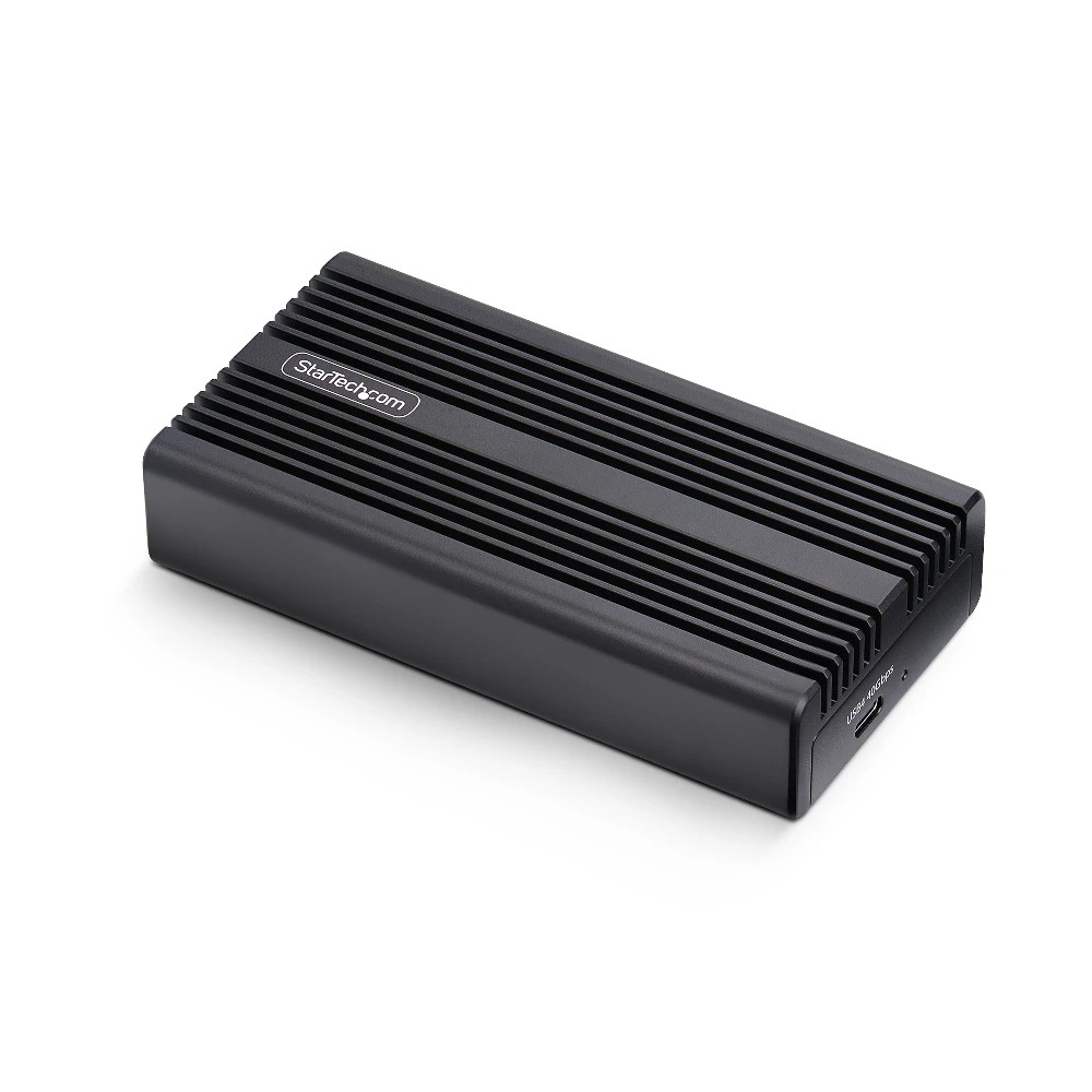 StarTech.com USB4 M.2 NVMe Enclosure, 40Gbps, External USB-C/Thunderbolt NVMe SSD Enclosure, Aluminum Heatsink Case, B+M/M-Key. Product type: SSD enclosure. Number of storage drives supported: 1, Storage drive size: M.2, Supported storage drive interfaces: PCI Express. Data transfer rate: 40 Gbit/s. Product colour: Black. USB connector type: USB Type-C